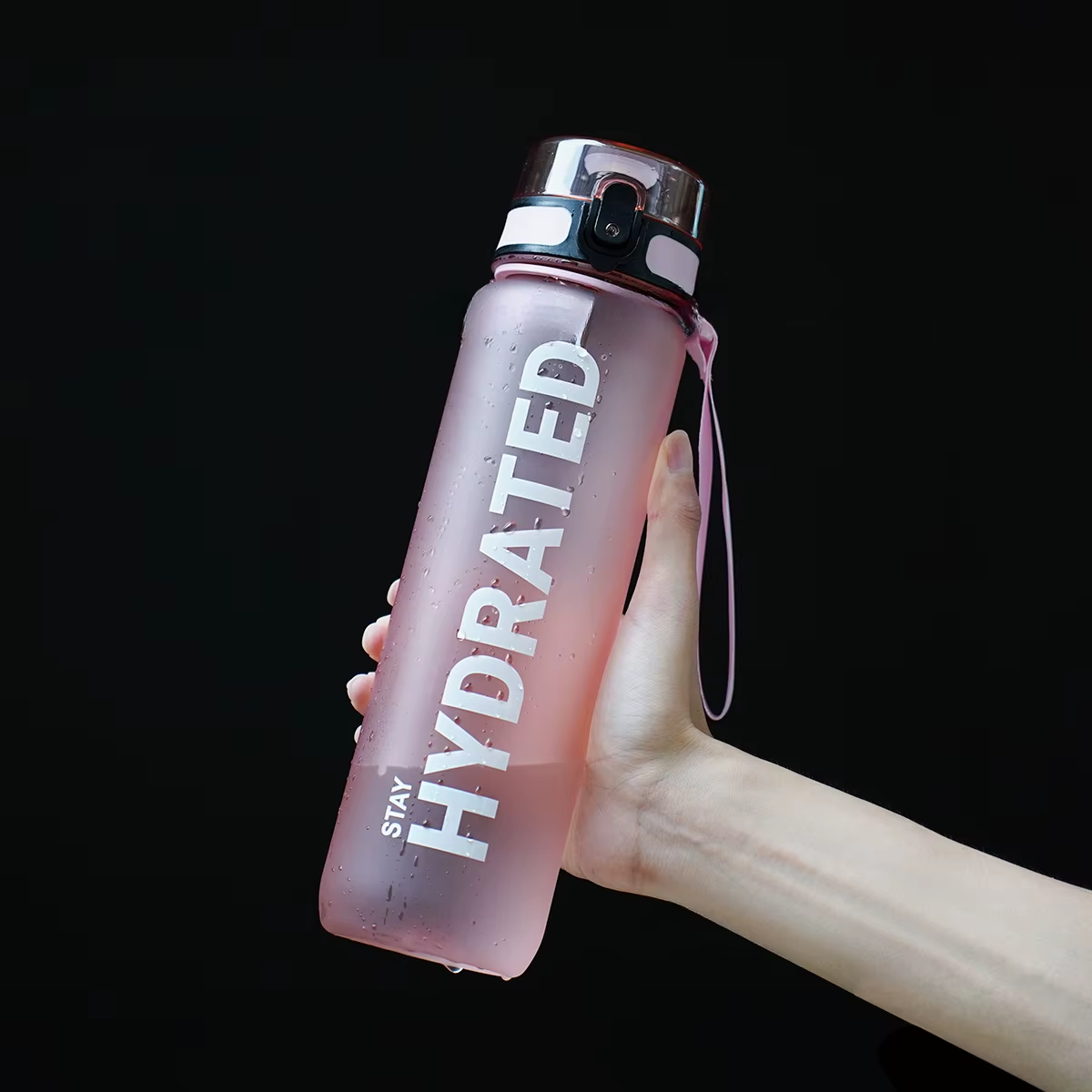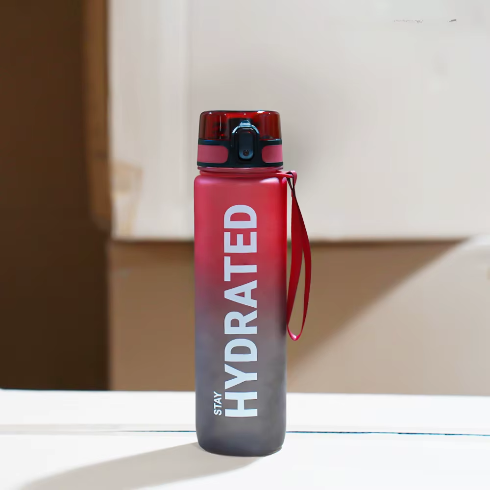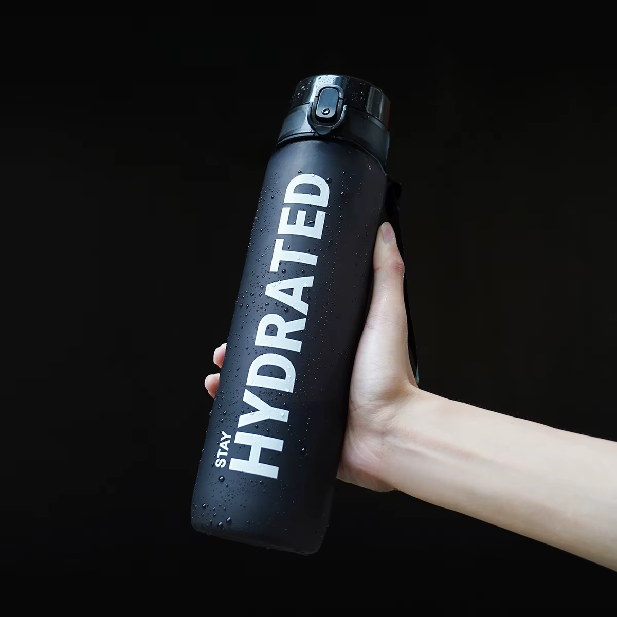 Botella de agua deportiva de plástico 1 litro, liviana, resistente y reutilizable. Ideal para hidratarte durante el entrenamiento, gimnasio, caminatas o actividades al aire libre. Diseño práctico con gran capacidad para mantenerte activo todo el día